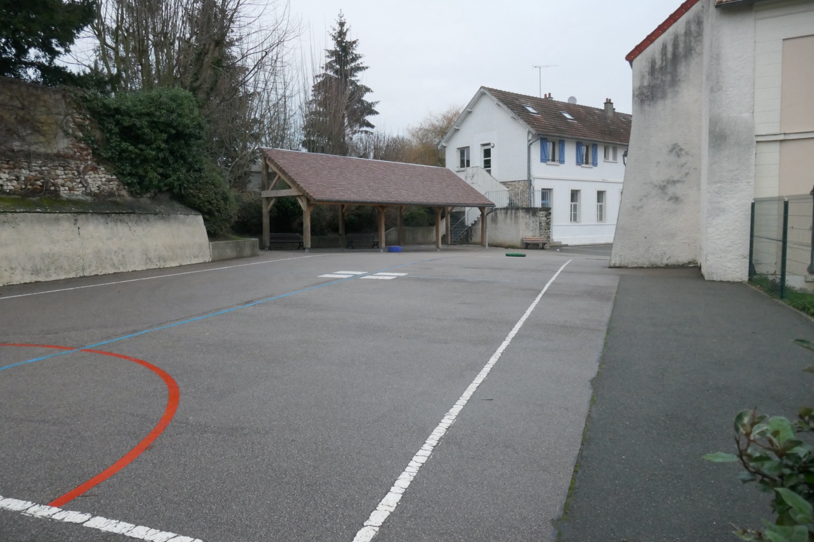 Préau dans la cour de l’école à Crespières
